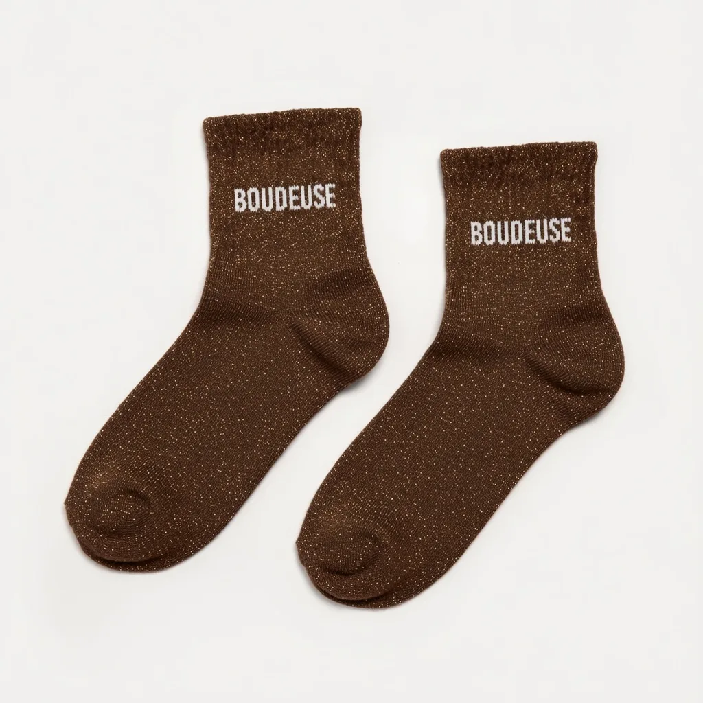 Les Chaussettes à Paillettes Boudeuse Marron apportent une touche chic et décalée à votre tenue ✨