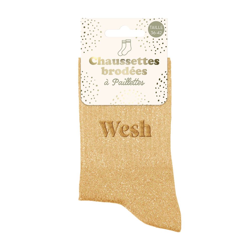 Hey, wesh alors ! Envie d’ajouter une dose de fun et d’audace à ton style ? Les Chaussettes à Paillettes Brodées Wesh sont là pour faire passer le message avec humour et éclat, tout en illuminant tes pas grâce à leurs paillettes captivantes.
