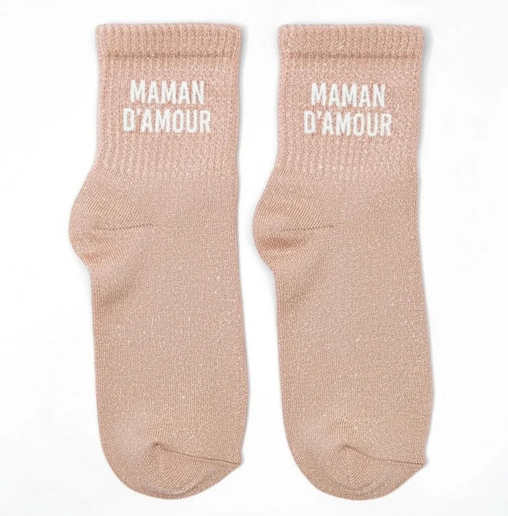 Chaussettes à paillettes rose tendre avec le message “Maman d’amour”, parfaites pour ajouter une touche de douceur et de style au quotidien. Leur brillance subtile illumine un jean ou une tenue basique sans en faire trop. Confortables grâce au mélange coton et fibres métallisées, elles se portent toute la journée sans compression. La taille unique 36/42 s’adapte facilement à toutes les morphologies. Une idée cadeau pleine de tendresse pour célébrer les mamans avec originalité ✨💖