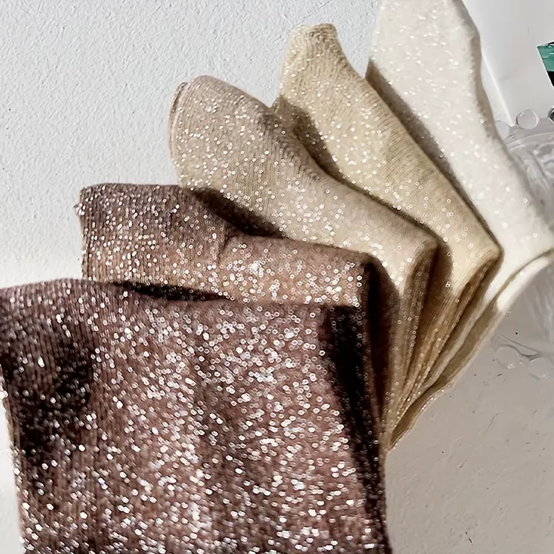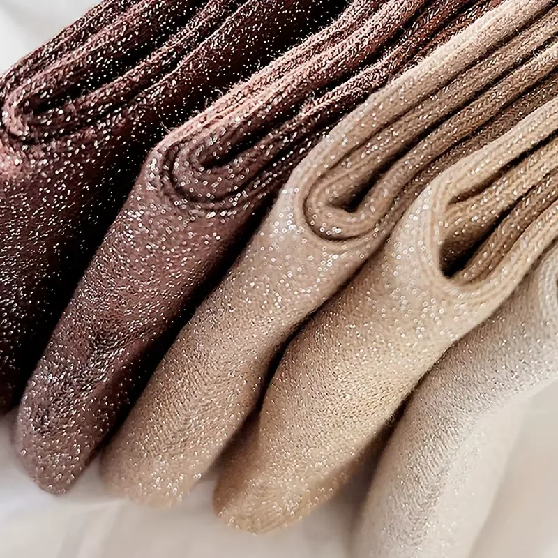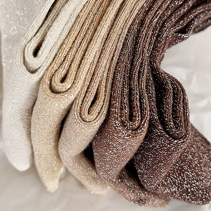 Craquez pour ce lot de 5 paires de chaussettes à paillettes, l’accessoire ultime pour illuminer vos looks quotidiens avec subtilité ! Inspiré de la tendance coréenne, ce pack propose un superbe dégradé de nuances terreuses, allant du brun chocolat profond au beige sable métallisé, sans oublier l’écru scintillant. C’est le détail mode qui fait toute la différence à la cheville, parfait pour twister vos baskets ou mocassins préférés. Conçues en fibres de polyester respirantes, elles assurent un confort absolu tout en captant la lumière. Idéales pour la mi-saison, du printemps à l’automne, ces chaussettes tube allient esthétique « glow » et douceur pour affirmer votre personnalité créative sans effort.