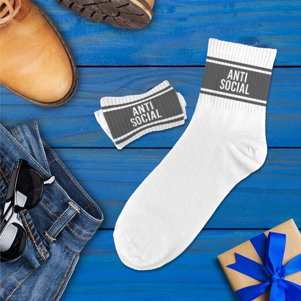 Le message « Anti-Social » est-il bien visible sur les chaussettes ?